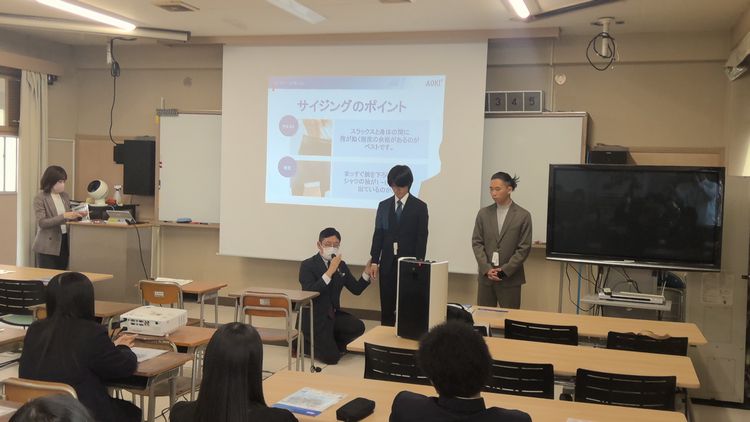 お知らせ/学校生活 着こなしセミナー 2025年11月13日 3年生の一部生徒を対象に、スーツ販売店の店長を招いてスーツ着こなしセミナーを実施しました。 卒業後、社会人として身だしなみを整えることの意義や意識すべきこと、スーツの選び方や着こなし方、礼装のマナーなどをご講義いただきました。
