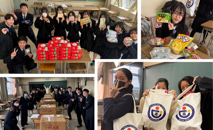 12月22日(月)、韓国ヒョヤン高校から「カルチャーボックス」が届きました。事前に、パートナーの生徒からそれぞれ「何か送ってほしいものはありますか?」と尋ねられ、本校の生徒たちはそれぞれ希望するお菓子や文具などをリクエストしていました。今回送られてきたのは、ヒョヤン高校のロゴが入ったバッグに入っている個人宛てのプレゼントと、素敵なクリスマスギフトボックスです。バッグの中には、パートナーが選んだ品物や、瀬戸西校生がリクエストしたもの、手紙などが入っていました。サンタのギフトボックスには、韓国のお菓子がたくさん詰められていました。本校からは1月に「カルチャーボックス」を発送する予定です。パートナーのことを思い浮かべながら、ギフトを選び、手紙を添えて送りましょう。